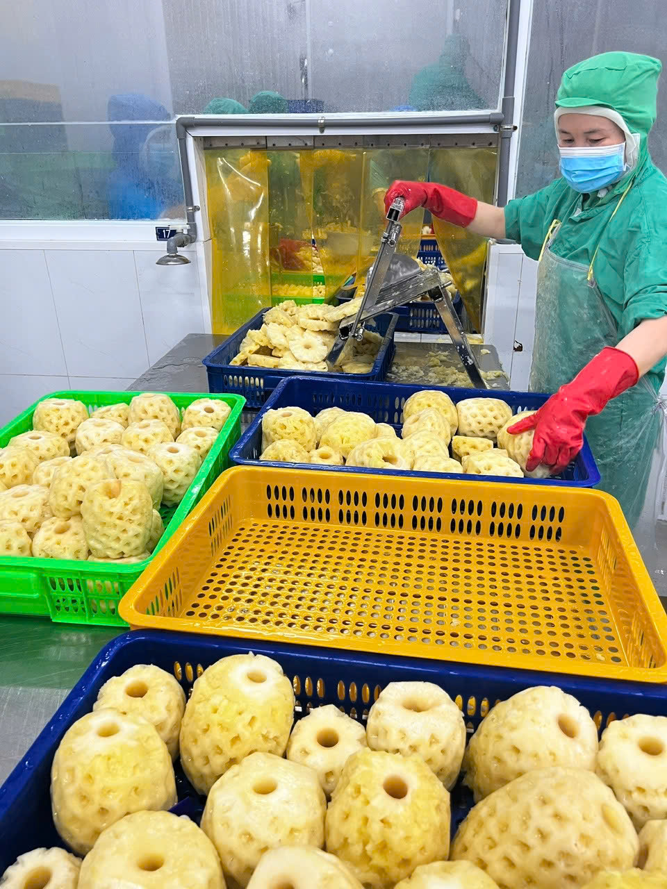 - Sơ chế: Cắt vỏ , rửa sạch, cắt lát , cấp đông